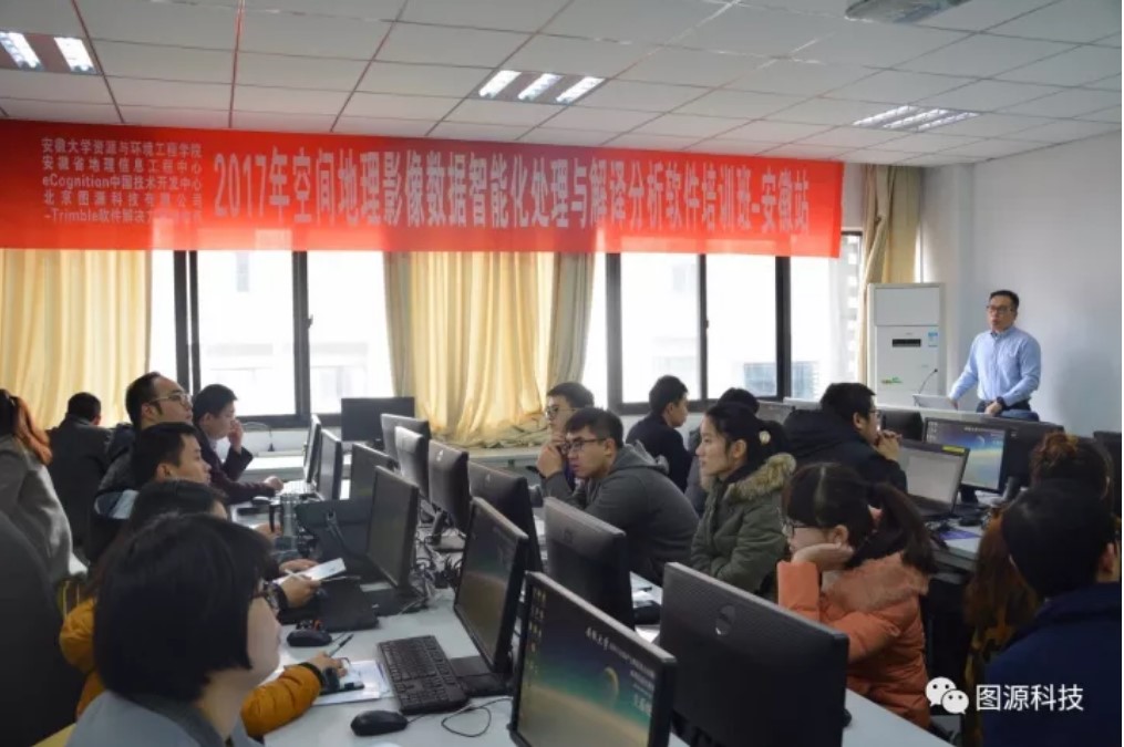 此次参加2017年空间地理影像数据智能化处理与解译分析软件培训班-安徽站”的成员来自于国内各大高等院校老师、学生、科研单位以及相关行业生产单位工程师等50余人。通过两天紧张有序的空间地理影像数据智能化处理与解译分析软件培训,学员全面了解面向对象的影像智能解译分析的最新技术、熟悉Trimble软件解决方案在空间地理信息领域中带来工程化、智能化的影像快速数据处理、解译分析、变化检测、目标识别等关键技术与应用,为空间地理影像数据智能化处理与解译分析软件更好的运用到未来的学习、科研与实际生产打下坚实的基础。