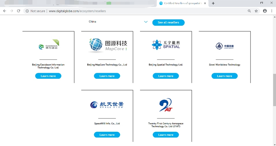 近期,Maxar官网已更新中国区代理商名录,k8凯发天生赢家科技于2019年初与Maxar公司签订协议成为中国区代理商,公司将以高分辨率影像技术为依托,向各行业用户提供卫星遥感影像资料、卫星遥感影像数据处理和卫星遥感影像数据综合应用服务。