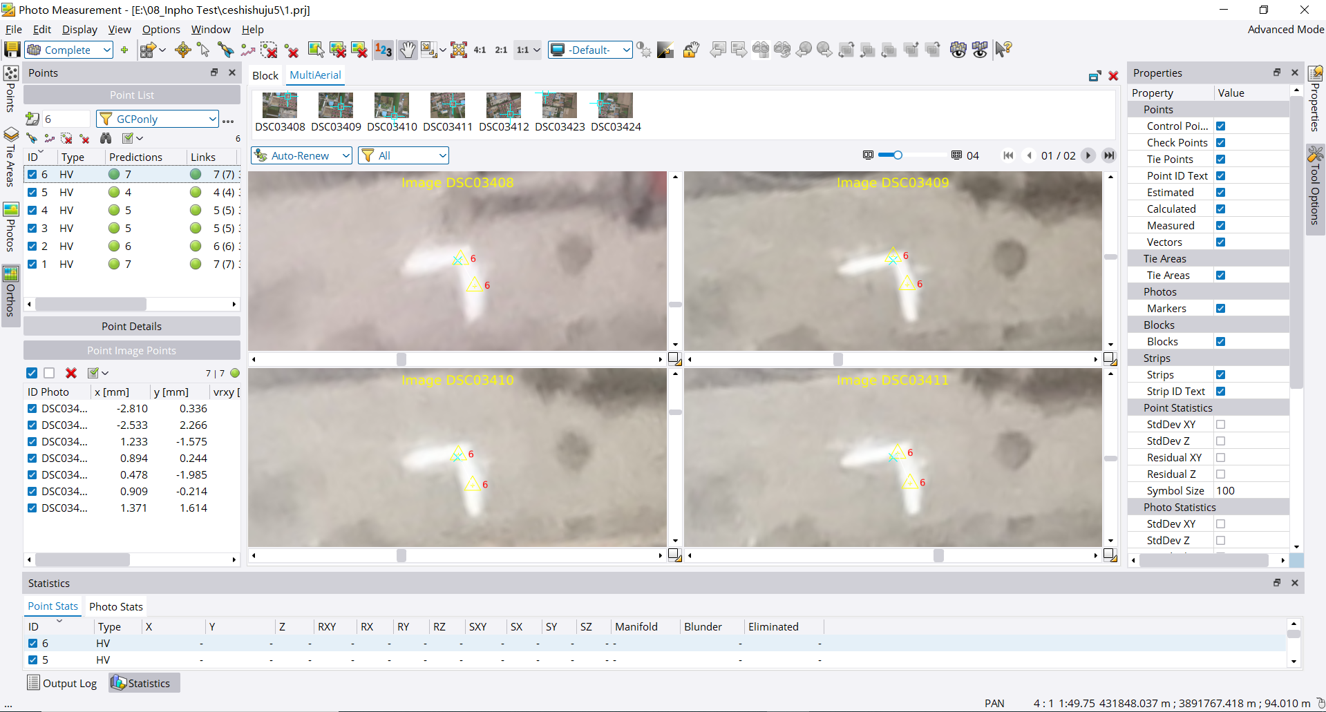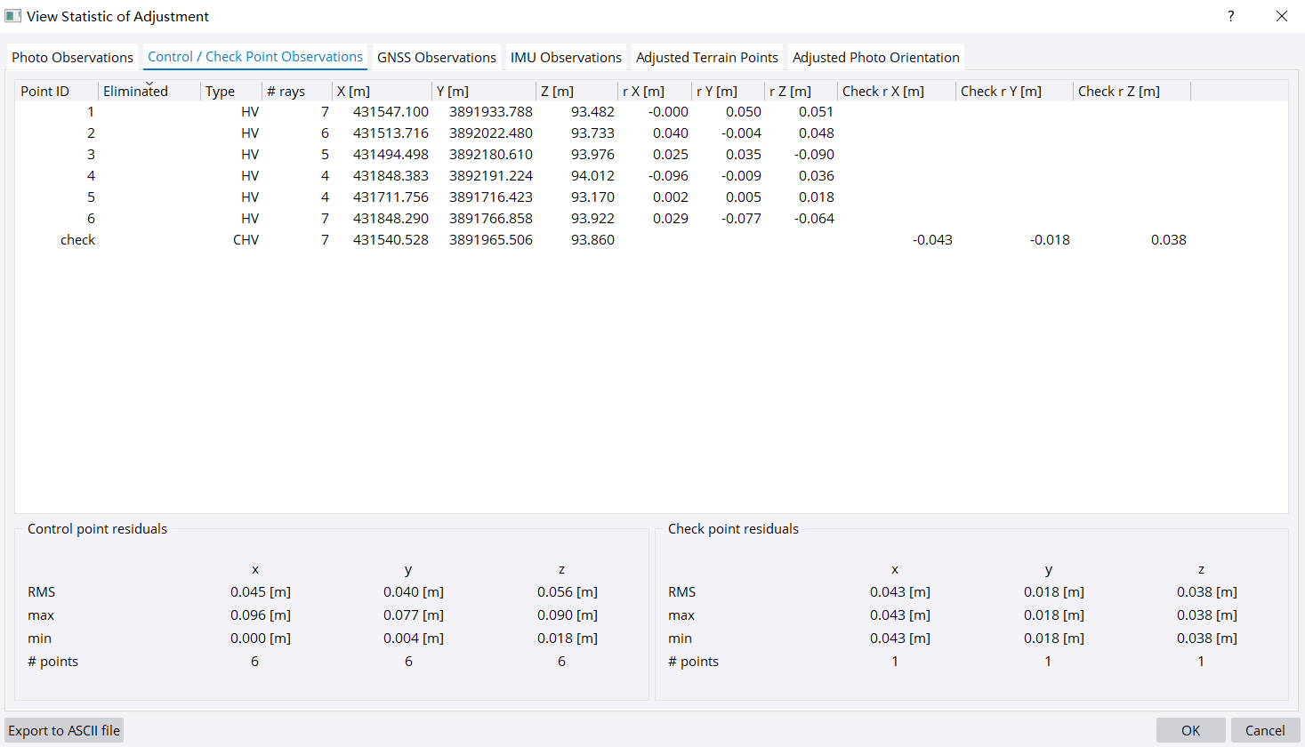 14.查看统计,判断控制点和检查点精度是否符合要求。