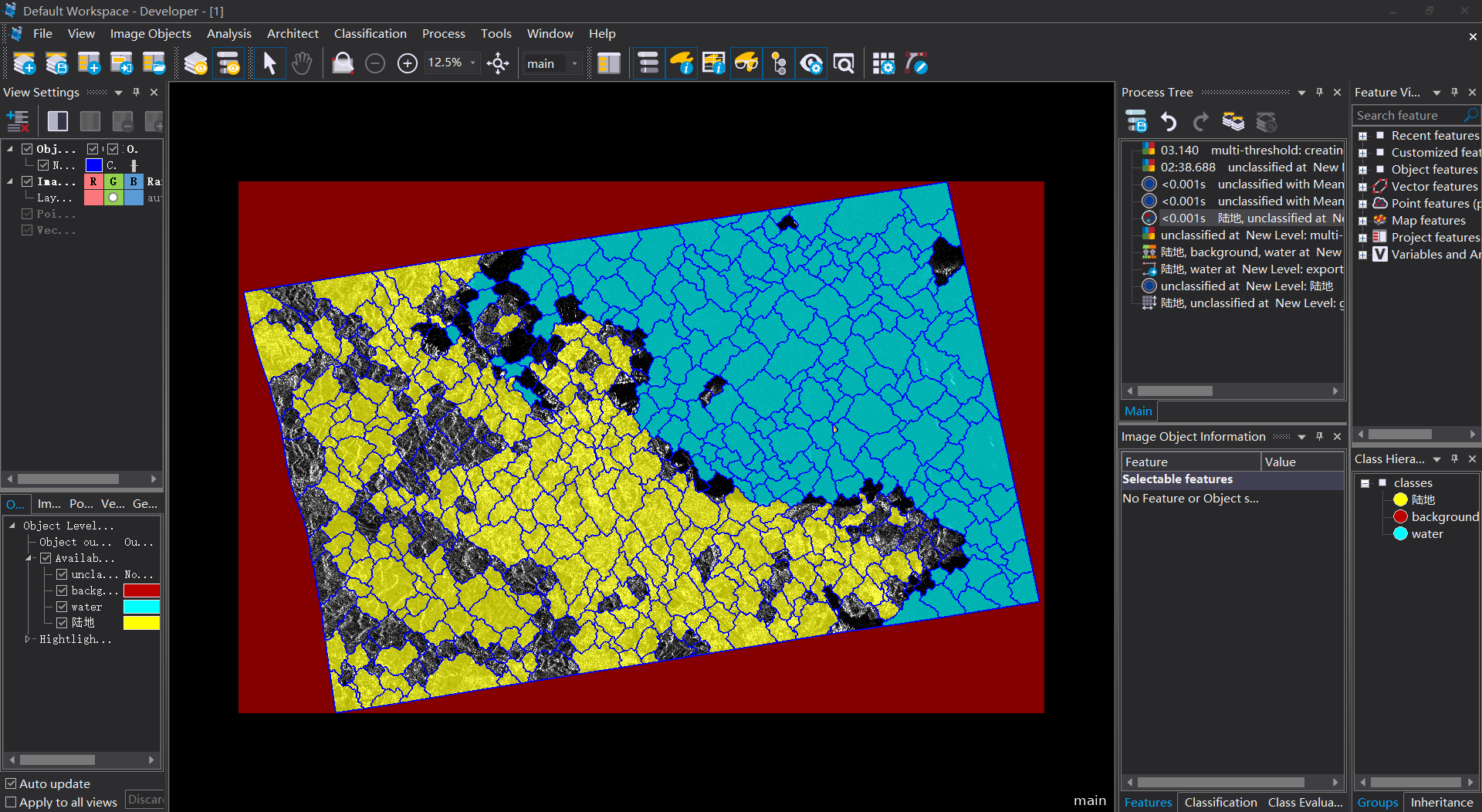 9 为了分割更清晰的海岸线---将“未分类”进行二次分割,再对“陆地”和“水体”进行再次分类