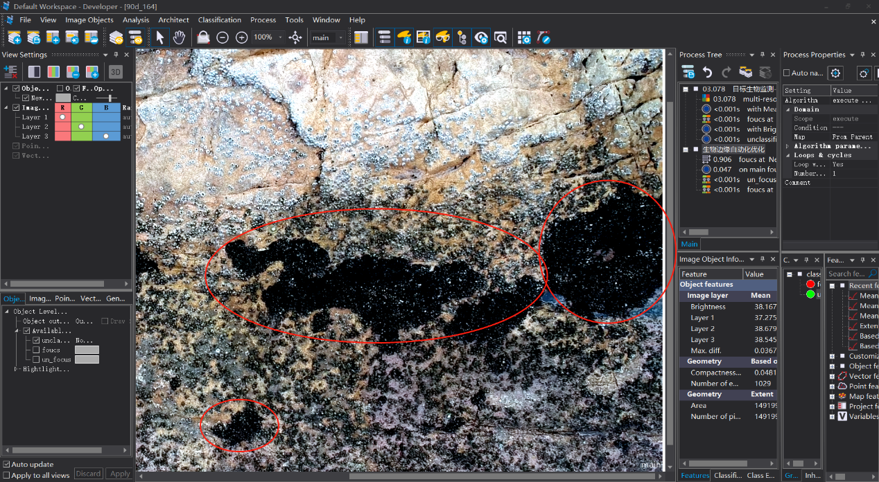 图1 eCognition数据加载效果(红圈标注内为“青口贝”)
